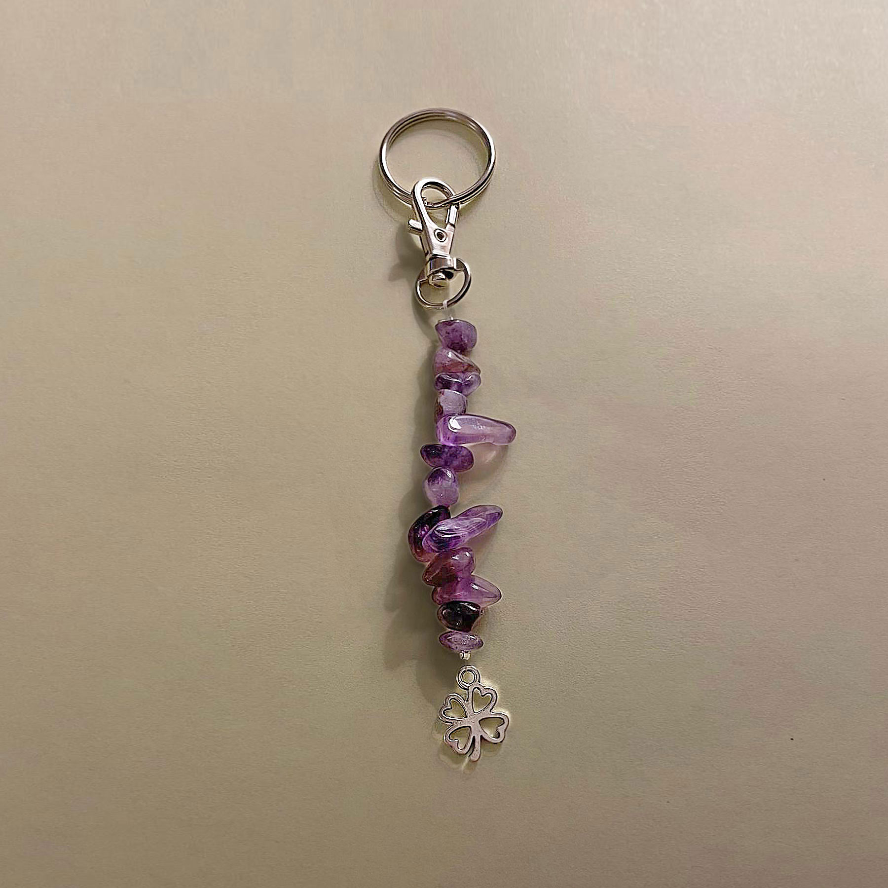 Amethyst Crystal Keyring with Four Leaf Clover Charm